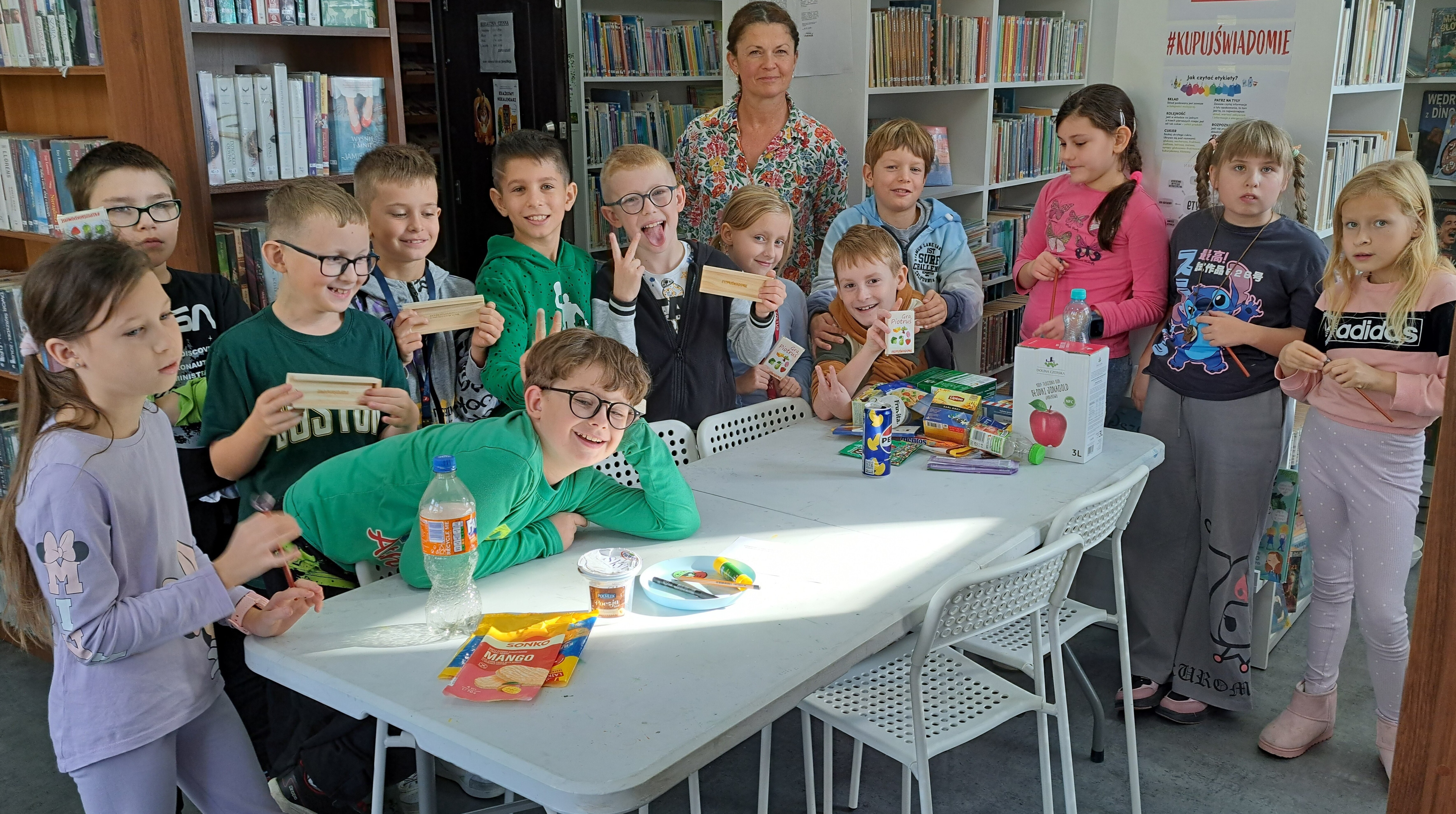 W dniu 15 października uczniowie klasy 3a wraz z wychowawczynią panią Izabelą Ziembowicz, wzięli udział w warsztatach zorganizowanych w Gminnej Bibliotece Publicznej w Krasieninie. Warsztaty poprowadziła pani bibliotekarka Dorota Kopyść w ramach projektu Krajowego Ośrodka Wsparcia Rodziny „Kupuj Świadomie”. Tematem spotkania było hasło: „Co kryje się na etykiecie?”.