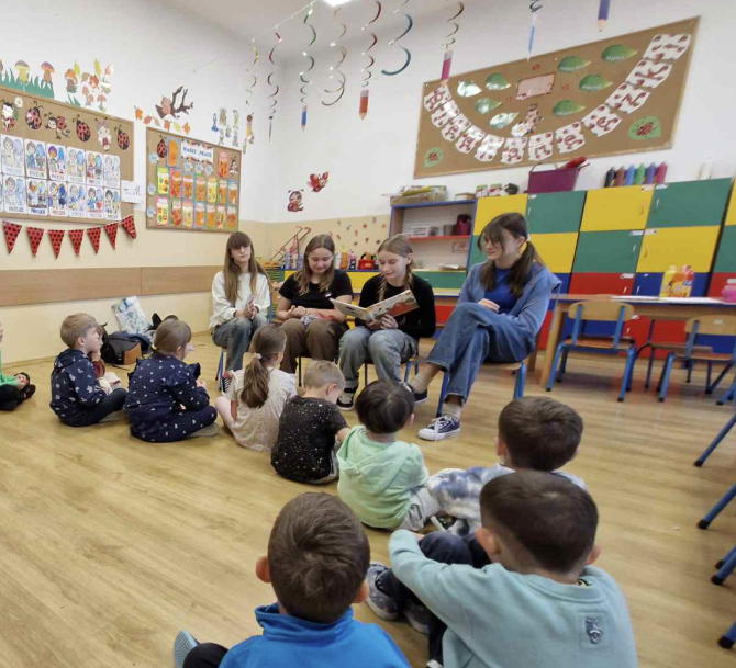Młodzież uczy się planowania, odpowiedzialności, wyszukiwania informacji oraz co najważniejsze przekazywania w sposób zrozumiały dla maluchów. A nasze maluchy uczą się świata oraz integrują ze starszą społecznością szkoły.