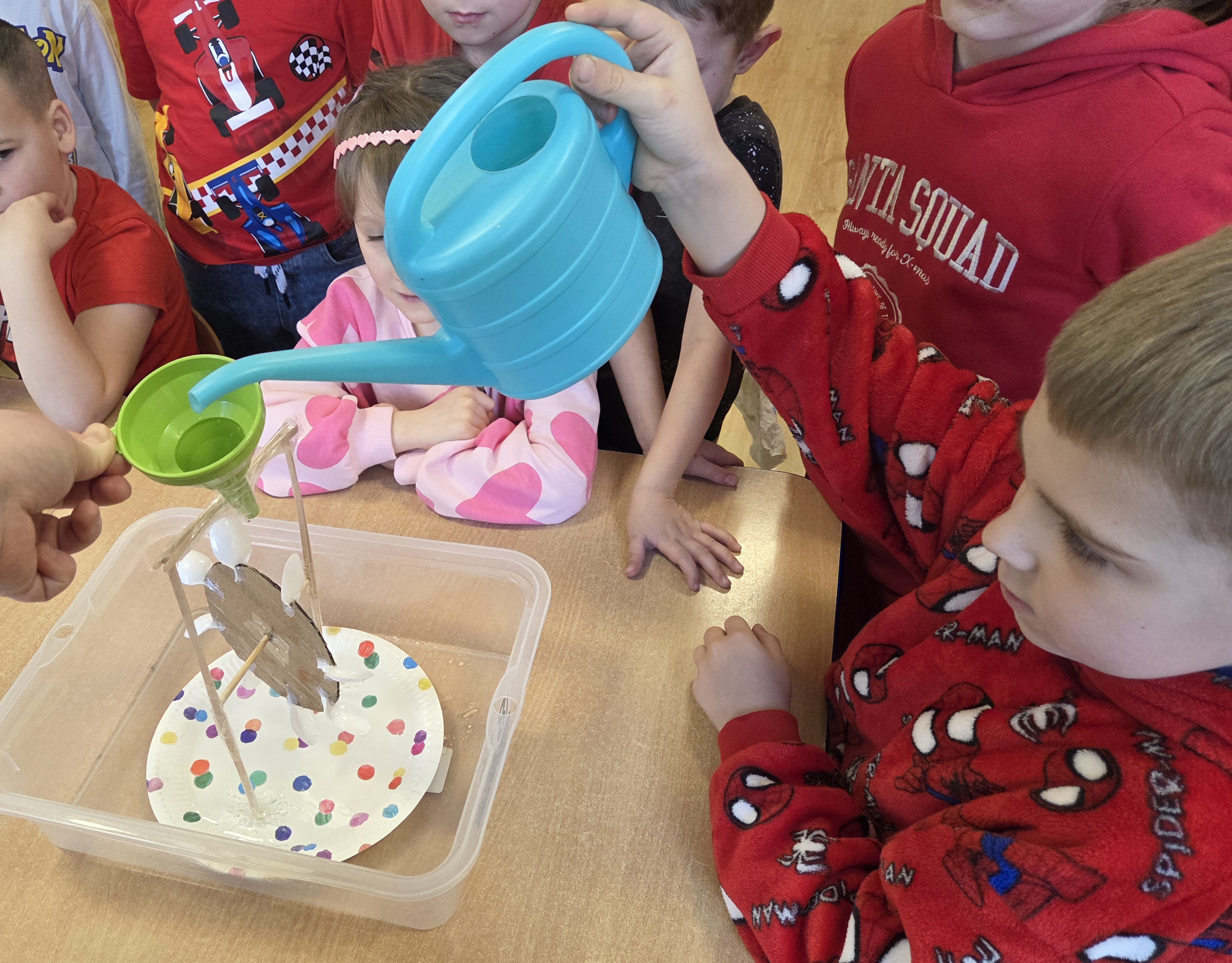 Najciekawszym eksperymentem okazało się wykonanie i testowanie turbiny wodnej oraz wyścigi samochodowe na różnych powierzchniach materiałów (folii bąbelkowej, tekturze, papierze ściernym itp. ).