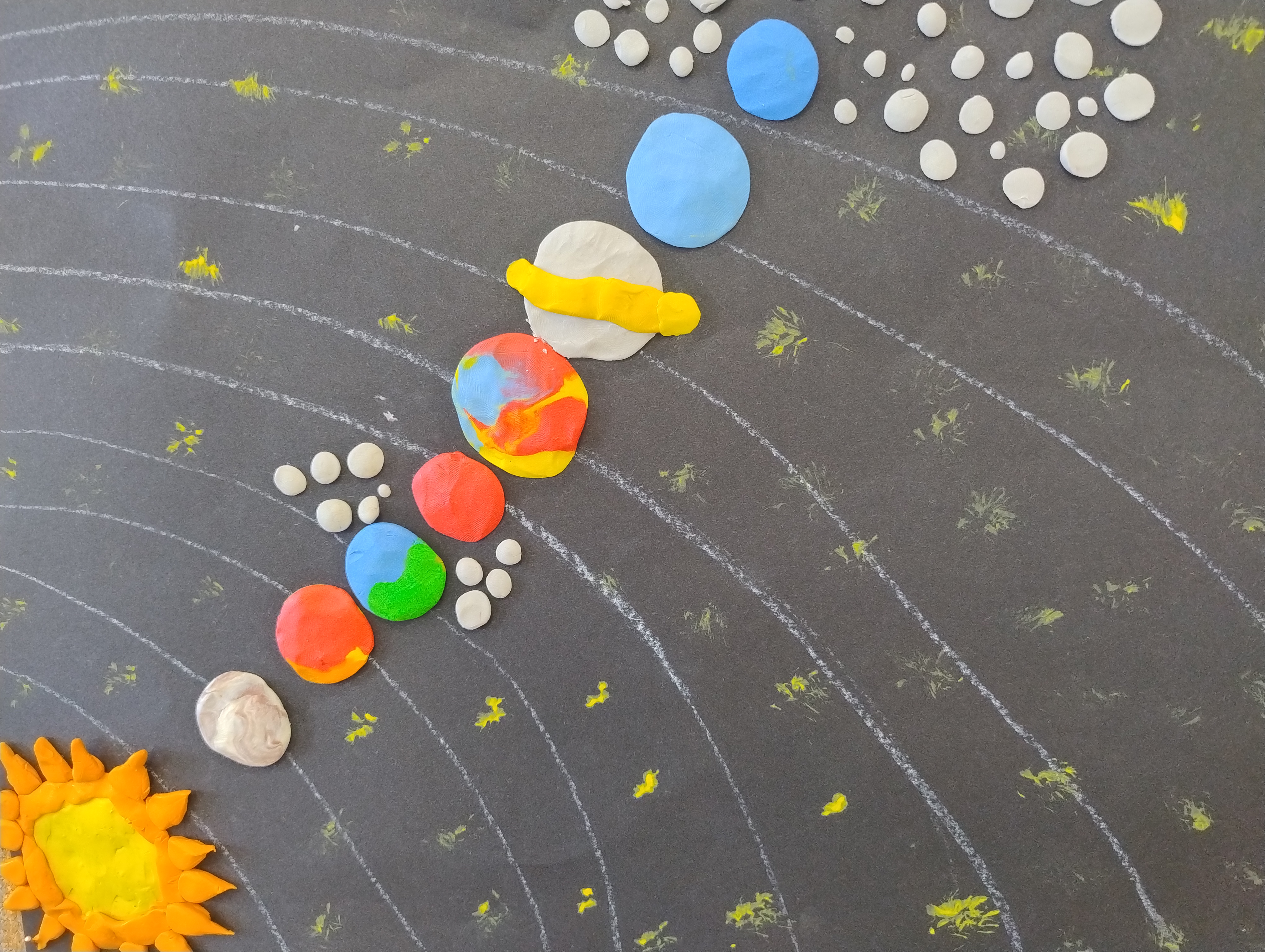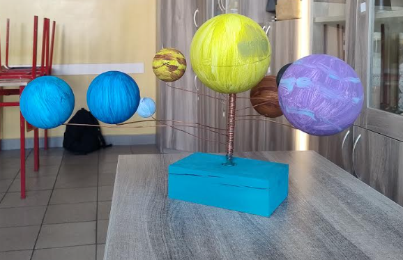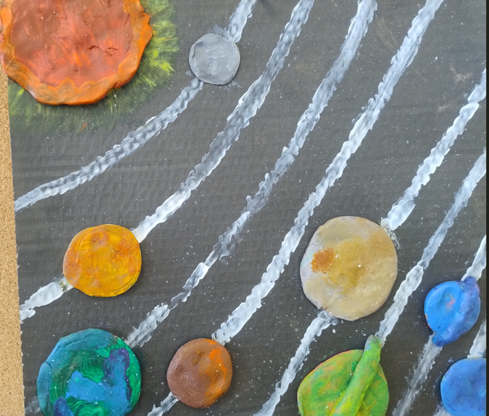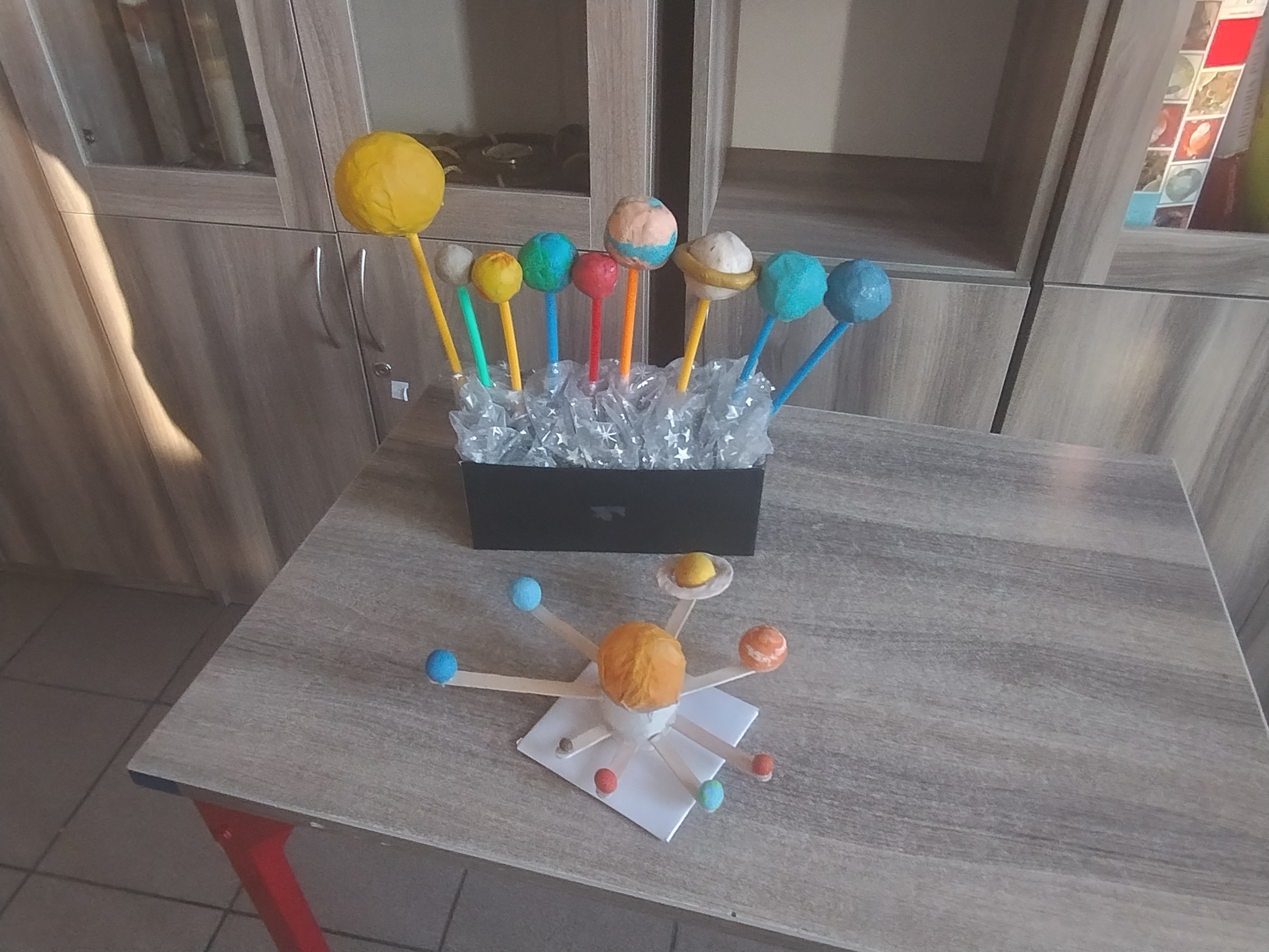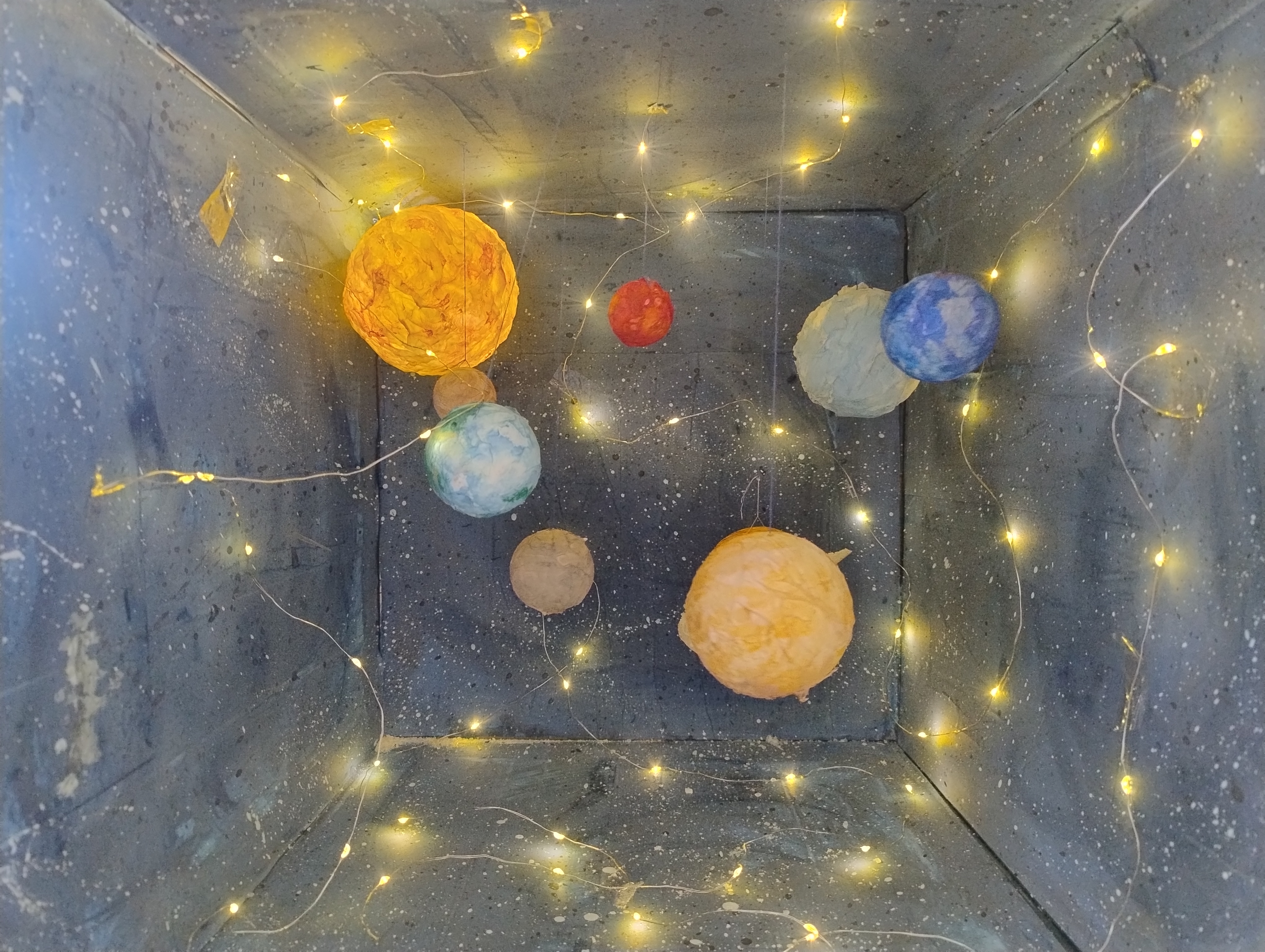 Na październikowych lekcjach geografii omawiając dział „Ruchy Ziemi” i temat „Ziemia w Układzie Słonecznym” chętni uczniowie klasy VI stworzyli projekty Układu Słonecznego.