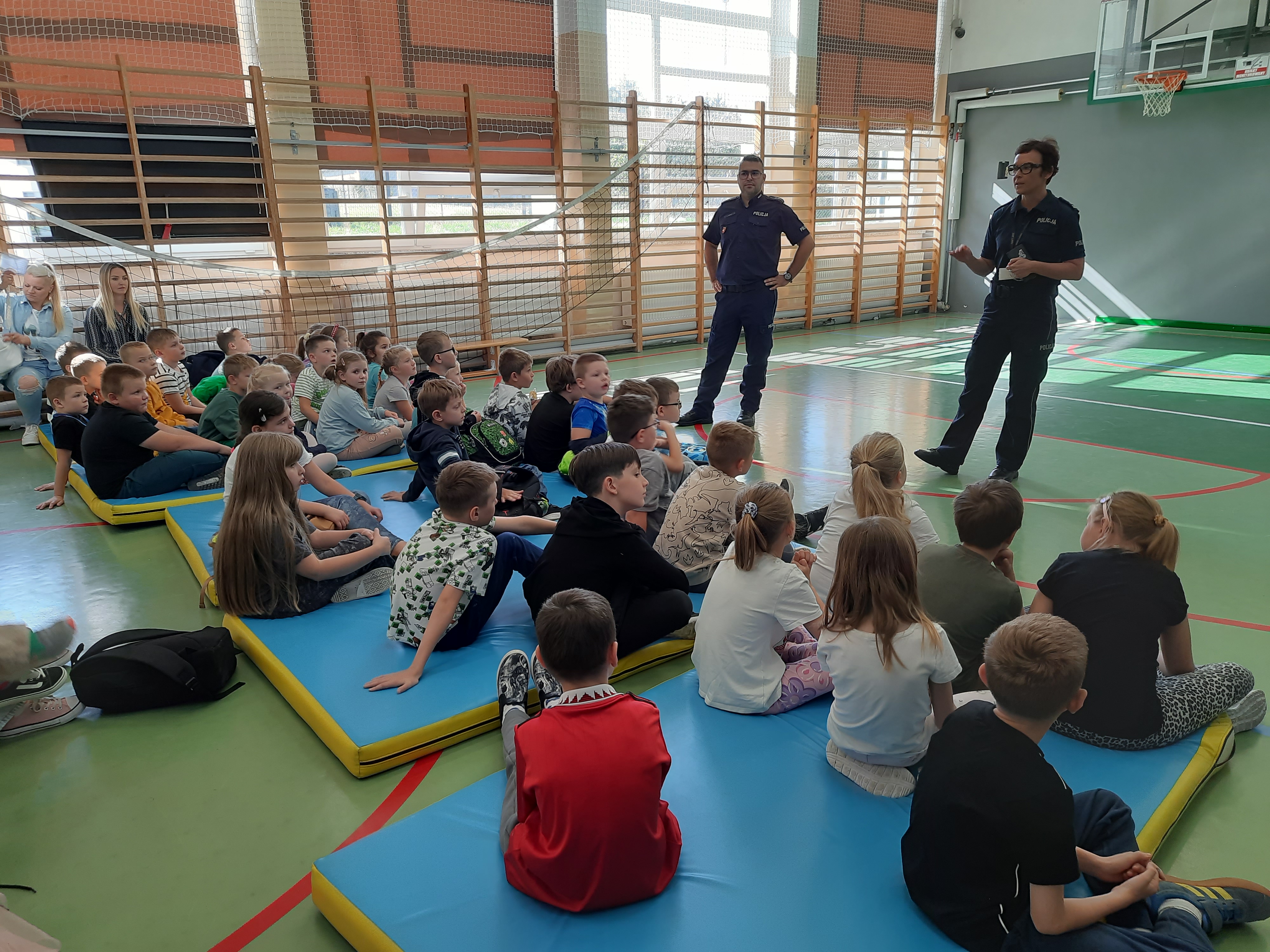 Podczas spotkania z młodszymi uczniami policjanci omówili zasady bezpiecznego poruszania się po drogach, przestrzegali przed kontaktami z nieznajomymi oraz przypomnieli zasady bezpiecznego zachowania w szkole. Dzieci miały okazję zadawać pytania, dzielić się swoimi doświadczeniami i aktywnie uczestniczyć w rozmowie.