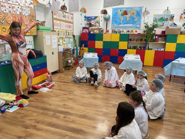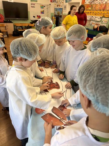 Podczas zajęć dzieci poznawały budowę i funkcje ciała człowieka, dowiadując się, jak pracują poszczególne narządy i dlaczego są tak ważne dla naszego zdrowia.